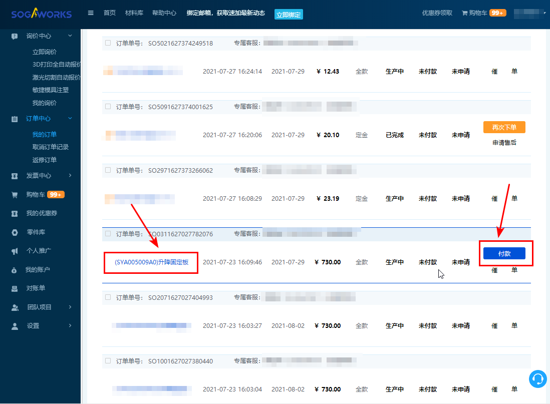 2. 點擊【訂單中心-我的訂單】,進入我的訂單頁面