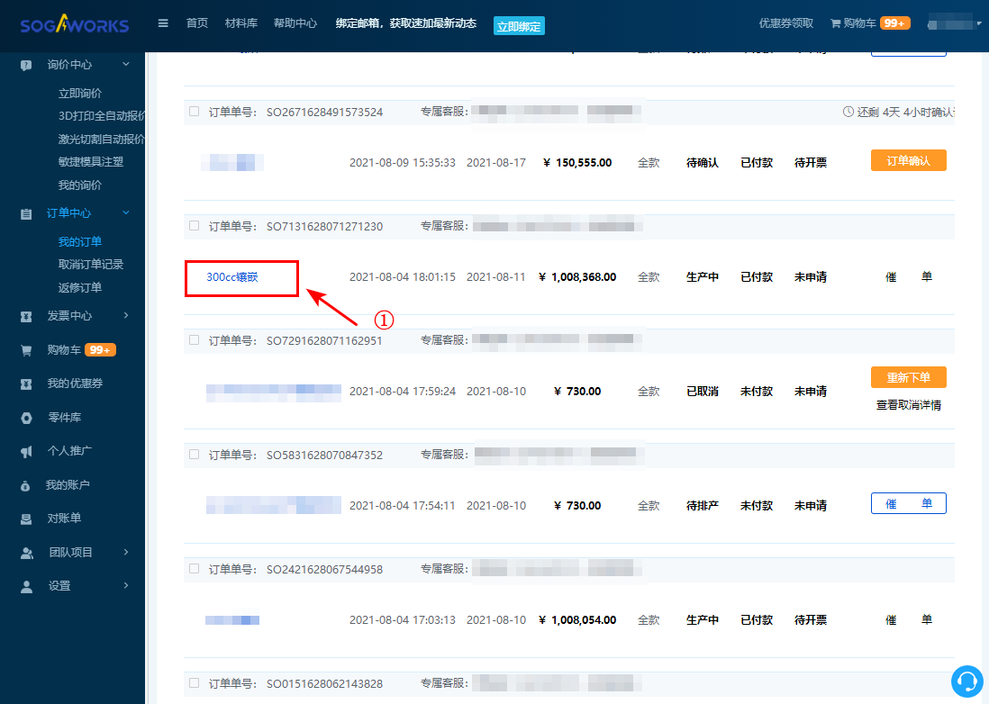 4. 點擊【零件名稱】,進入訂單詳情頁面